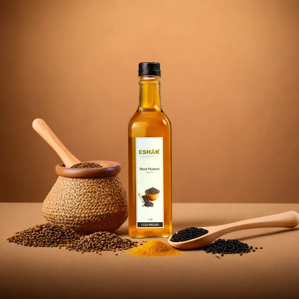 At Eshar Oils, our Black Mustard Oil is a symbol of purity, quality, and the essence of nature. Crafted from premium black mustard seeds and cold-pressed with precision, our oil retains its natural richness, delivering unmatched flavor and a plethora of health benefits.